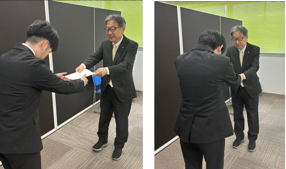 入社式では、社長からのあいさつに続き、辞令の授与を行いました。